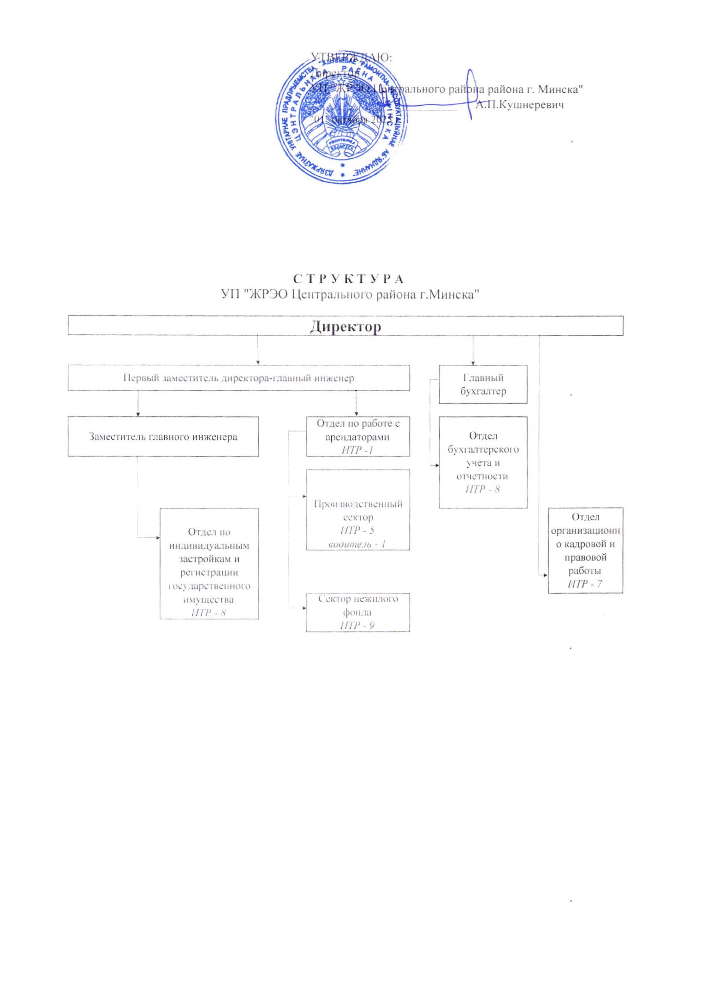 Основными функциями Государственного унитарного предприятия «Жилищное ремонтно-эксплуатационное объединение Центрального района г. Минска» является хозяйственная деятельность, направленная на предоставление в аренду объектов недвижимого имущества, находящегося в хозяйственном ведении Предприятия, а также обеспечение содержания и сохранности нежилого фонда, контроль за соблюдением собственниками индивидуальных домовладений надлежащего санитарного содержания придомовых территорий сектора индивидуальной застройки и недопущения самовольного строительства (реконструкции).
